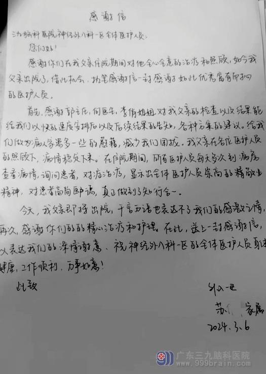 患者来信 联系电话:020-62323939 邮箱:999brain120#163.com (#改@) 【QQ咨询】: 790460929 神经外八科一区感谢信 http://www.999brain.com 时间:2024-04-24 来源:神经外八科一区 编辑:srm 阅读:781 上一篇:神经外五科感谢信 下一篇:神经外五科感谢信 我要评论: 已有0个评论,查看更多评论>> 登录发言| 注册 匿名发言 (无需注册) 请输入验证码 相关报道: 神经外五科感谢信 神经外五科感谢信 纸短情长,见字如面 神经外九科感谢信 神经外九科感谢信 一封来自华润家人的感谢信 神经外十科感谢信 神经外九科感谢信 地址:广州市沙太南路578号 邮政编码:510510 咨询/接诊(24小时):020-62323939(手机:13922111505) 邮箱:sjnkyy@crmedical.hk 传真:86(020) 66299224 官方订阅号 官方服务号 Copyright 2006-2026 广东三九脑科医院版权所有 粤ICP备11100995号 服务性质:非营利性网站 粤卫网审(2013)10号 粤公网安备 44011102002143号