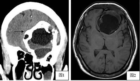 临床病史:男,42岁,因“左眼进行性突出伴视力下降15年,前额及左眼疼痛10天余”入院。查体见左侧眼球突出,双侧瞳孔等大等圆,对光反射灵敏,眼球运动自如。血清总胆固醇:4.68mmol/L,高密度脂蛋白:1.02 mmol/L,低密度脂蛋白2.99 mmol/L,均未见异常。