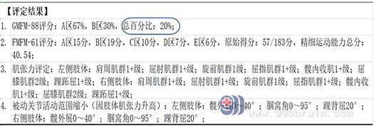 观察以上评估结果显见,效果并不理想,儿童康复部评估中心负责人表示:孩子的整体功能有出现上升阶段,主要表现在运动功能上,但对于孩子的肌张力与异常姿势,我们需要综合康复才会有更明显的疗效。与家属沟通后给予孩子增加了针对性的振动疗法、跑步机(有氧训练)、MOTOmed治疗。