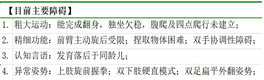 根据孩子情况,给予患者康复评估如下: