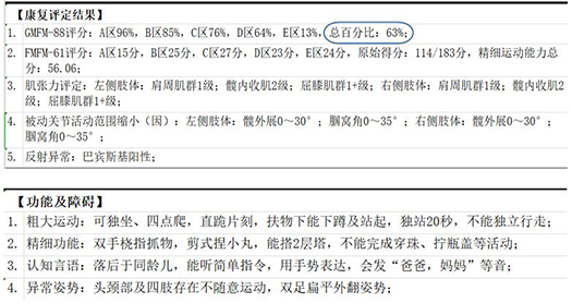 3个月,孩子家属再次带孩子复查康复评估,情况如下: