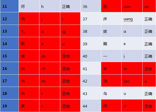构音运动:除了b/m/g/h音位,其余皆未习得。