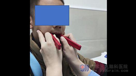 第二疗程:加强舌肌力量,促进舌正确运动模式。部分治疗同上,舌运动训练,舌肌抗阻训练。