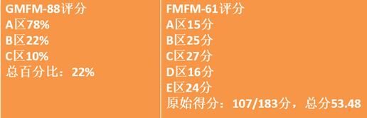通过对比可以看出,经过一年时间的患儿的粗大运动功能方面有了不错的进步,从不会撑手坐到能撑手坐8秒以上,小朋友的每一个进步都让家长欣喜不已。