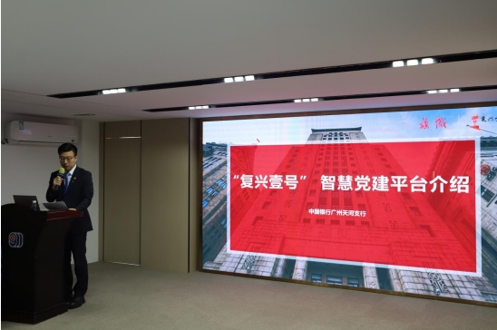 中行天河支行广州大道支行副行长张祖伟介绍中国银行党建产品“复兴壹号”