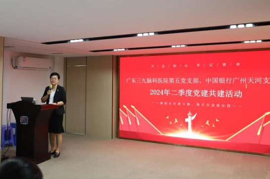 中行天河支行卢丽妍副行长提到,与我院的合作历史由来已久,从1999年合作以来,始终秉承与医谋发展、共成长作为银医合作理念。借助这次党建共建活动,希望能与广东三九脑科医院进一步深化合作内容,包括提供基本结算、代发员工工资、员工理财增值、员工消费贷款、复兴壹号、共青团及工会组织平台建设等一揽子金融服务,进一步拓宽双方合作领域,深化合作水平。