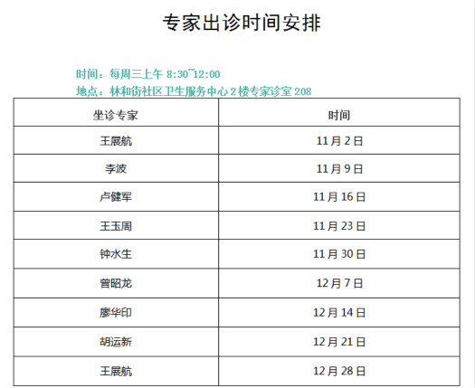 附专家出诊时间安排表和专家简介