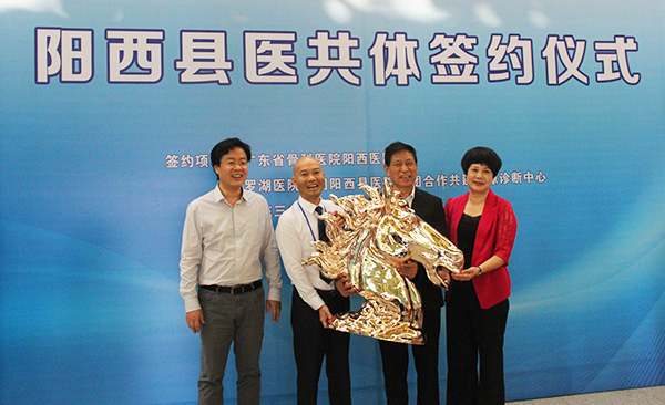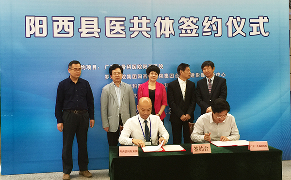 阳西县县委书记陈启蒙,阳江市卫生和计划生育局局长、党组书记柯燕,阳西县副县长陈以霜,阳西县医院集团、阳西县人民医院院长洪家文等见证了此次签约仪式,并一同参观了阳西县人民医院脑科中心、远程会诊中心、影像诊断中心、检验中心等科室,期间与我院朱丹院长、黄勤教授、吴杰主任等就专科联盟事宜进行交流。