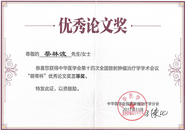 会议邀请了来自国内外放射肿瘤学知名专家学者及众多放射肿瘤学医师、放射生物学研究人员、医学物理师、放射治疗技师、放射治疗护士及医学工程师等共同交流和展示放射肿瘤学各领域近年所取得的成绩,共同探讨和展望放射肿瘤学的发展前景。我院蔡林波教授和肖青放射治疗技师分别在会上发表学术演讲。
