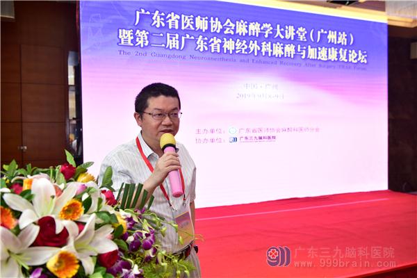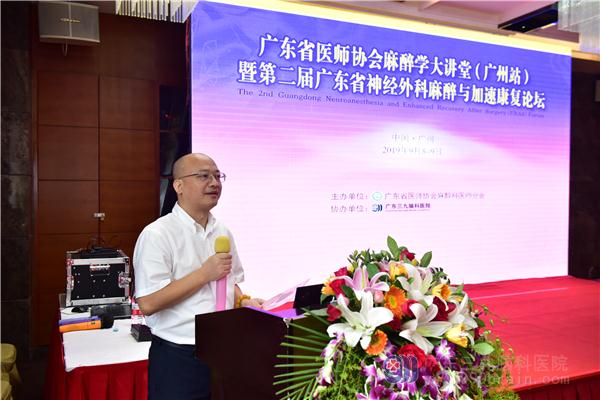 我院党委书记兼副院长蔡林波在致辞中介绍,我院麻醉科作为集临床麻醉、疼痛诊疗、重症监护与治疗、手术护理、麻醉护理等一体的大学科,过去一年成功地为我院4000余台神经外科手术保驾护航。在国内专家的支持下,去年成功召开了第一届“广东省神经外科麻醉与加速康复论坛”,希望本次学术盛宴能继续为广大神经外科围术期麻醉和加速康复领域医护人员搭建一个交流、学习、提升的平台,推动新领域、新进展和新技术的发展。