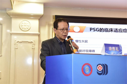 广东三九脑科医院康维礼教授发表《PSG/便携监测适应证与报告要点》的主题演讲。