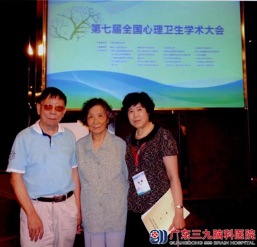 郭沈昌教授(左)与中科院心理所吴振云研究员(中)、中国心理卫生协会理事长马辛教授(右)在会场上合影。