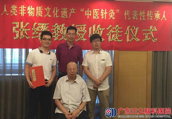 6月17日,在哈尔滨举行的人类非物质文化遗产“中医针灸”代表性传承人张缙教授收徒仪式上,广东三九脑科医院康复训练中心张新斐主任和李世安医生完成了庄严的拜师仪式,正式成为张缙教授门下弟子。