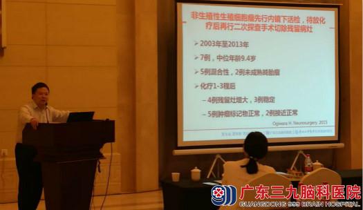 会上,我院肿瘤综合治疗中心主任蔡林波发表了题为《肿瘤标记物阳性的鞍区生殖细胞肿瘤非手术治疗》的学术报告,总结了我院近6年来临床诊断的15例肿瘤标记物阳性的鞍区生殖细胞肿瘤病例,其中纯生殖细胞瘤4例,非生殖性生殖细胞瘤11例,经放化疗等非手术治疗后,其6年生存率达74%。
