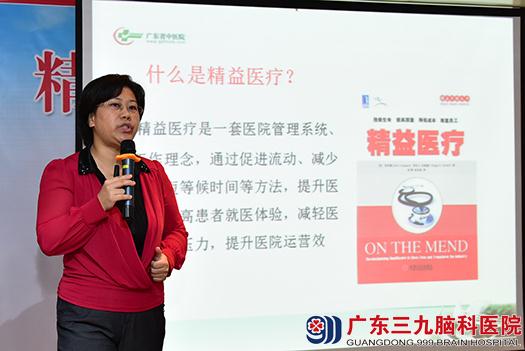 她强调建立精益人才成长体系以及重视精益成果的展示与分享的重要性,对此广东省中医院举办精益绿带培训班,专门培训精益项目管理人。她说,精益项目的建设的过程中要重视营造精益管理氛围、推广精益文化;让一线员工走上精益大讲堂展示改善成果。
