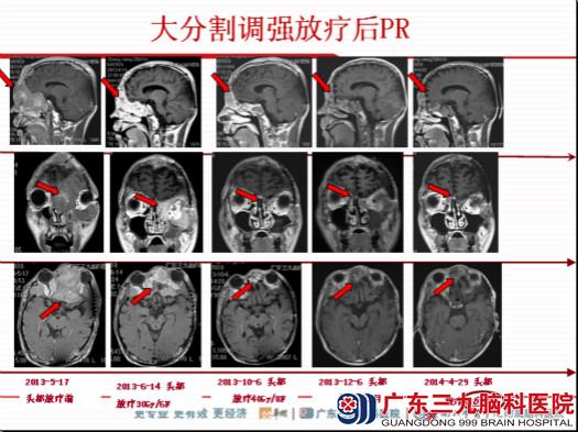 最后,他分享了两例成功救治的复发头颈部腺样囊性癌病例,尤其让大家惊叹的是第1例29岁患者,6年间历经了5次手术,2程放疗,前往日本福冈拟行重粒子被拒,在蔡林波主任精心呵护下,采用大分割调强刀的技术,使肿瘤3个月后从470ml缩小至113ml,6个月后缩小至47ml,让患者的生存延长了2年时间。