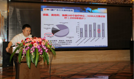 揭牌仪式后,学术会议正式开始,蔡林波主任发表了《危重颅内恶性肿瘤的急诊放疗》的学术演讲。
