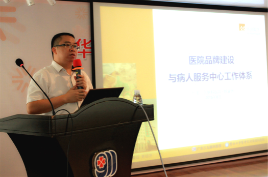 在本次华润医疗集团“润心”医务社工和“品牌工作坊”成立大会上,广东三九脑科医院病人服务中心主任胡誉怀向与会人员分享广东三九脑科医院的品牌建设经验以及病人服务中心工作体系。