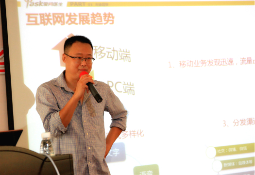在本次华润医疗集团“润心”医务社工和“品牌工作坊”成立大会上,新浪爱问医生副总裁董英志分享了《互联网+的医院品牌与营销新机遇与模式》。
