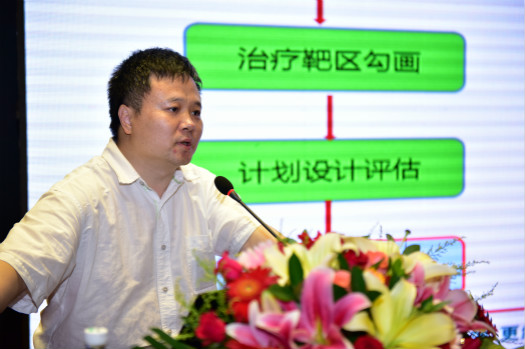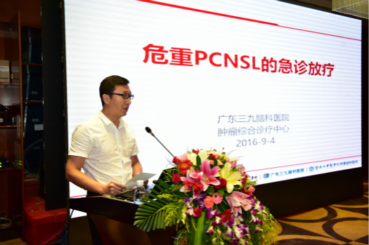 广东三九脑科医院山常国副主任发表《危重原发性中枢神经系统淋巴瘤的急诊放疗》的主题演讲。