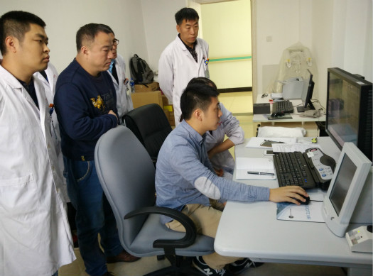 精彩的演讲博得了与会同道的阵阵掌声。会后,汪文胜主任和陈楷哲技师一同前往该院磁共振室,对该院新装的GE1.5T磁共振扫描进行了技术指导以及操作培训,规范了扫描序列以及扫描要求,旨在于帮助该院更加规范地开展多个脑部新技术检查项目。