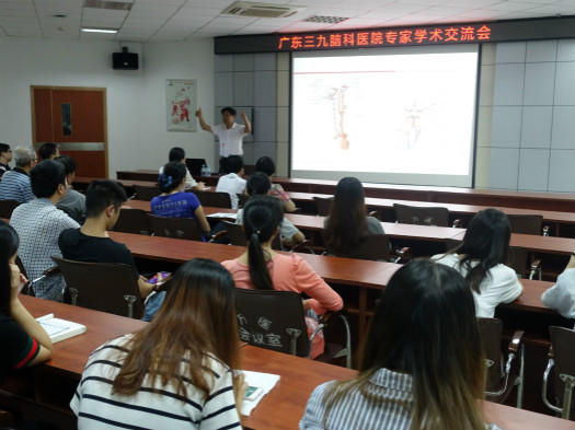 此外,我院老党员代表、名誉院长黄勤教授冒着台风前往东莞万江医院为该院的医护人员约100人进行授课交流。