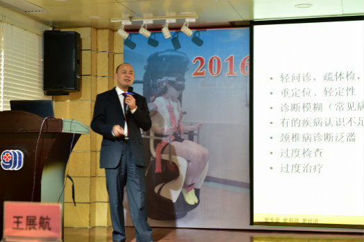 北京大学天坛医院王浩教授发表了《颈性眩晕与颈椎病》的主题演讲。