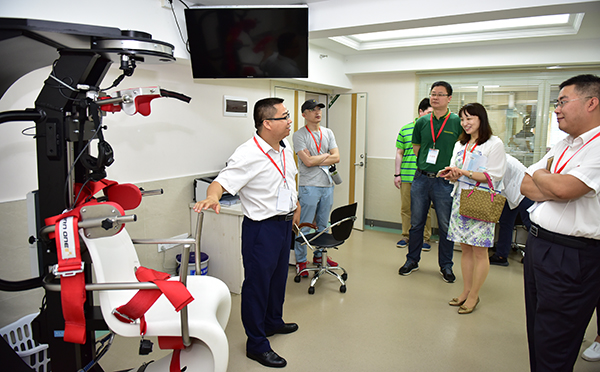 在市场部主任王大勇、病人服务中心主任胡誉怀的陪同下,与会领导、同事参观了广东三九脑科医院门诊部、影像中心、DSA、癫痫中心、心理行为科、脑瘫科、康复训练中心等科室。