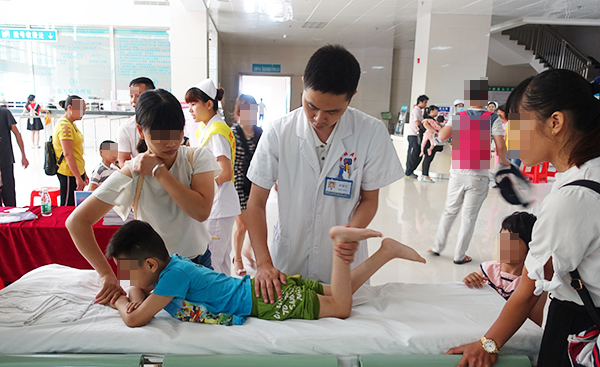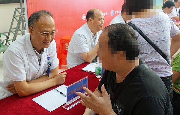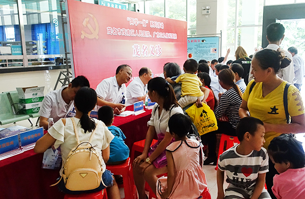 6月17日,骨科主任王延斌、脑瘫科主任尹靖宇、门诊部主任王林涛等专家为茂南当地群众举行惠民义诊。