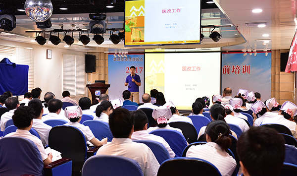 7月4日,医院隆重举行贯彻落实城市公立医院综合改革动员和培训大会,全院90余名职工代表出席了会议并认真接受培训。朱丹院长强调,开展医改是国家层面的决策,我们每个医务人员都要认真领悟医改政策要求,并让各项政策落到实处;做好近期7月15日药品零加成的工作,顺利迈出医改工作第一步。