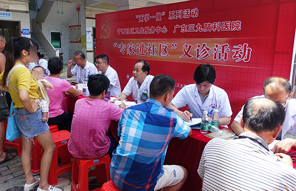 义诊场面十分火爆,人头涌动。前来问诊的群众中有不乏广东三九脑科医院的老病人拿着病历复诊的,更有早早看到义诊通知来此等候的。
