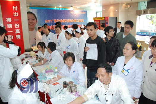 本院消息:今年春节前至今,我国大部分省份面临着“季节性”缺血状况,很多医院甚至暂停部分血型病人的手术。据悉,春节后,在广州就医病患者剧增,临床用血比上年同期增长了12%以上,为弘扬救死扶伤精神,倡导无偿献血无损身体健康,解决血液紧缺的难题。3月25日,广东三九脑科医院160多名医护人员纷纷挽袖带头献血,在本院举行了大型的“用关爱之心续写生命新篇章——广东三九脑科医院2011’无偿献血活动”,共捐献了32000毫升的血液,保证了医疗的顺利进行。广州市血液中心贝春花副主任、白云区卫生局林斌书记、京溪街道办许小青书记、广东三九脑科医院单国心院长、刘驹副院长等出席了献血活动。