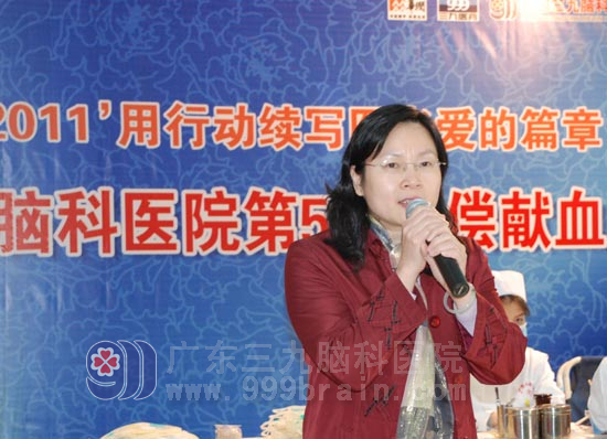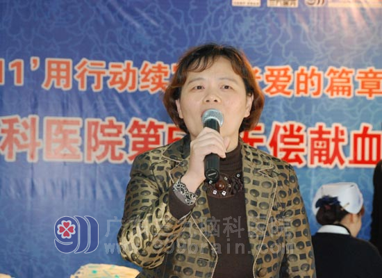 广州市血液中心贝春花副主任出席献血活动并发表讲话。