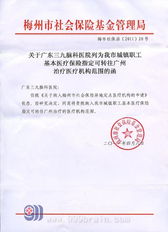 本院动态 联系电话:020-62323939 邮箱:999brain120#163.com (#改@) 【QQ咨询】: 790460929 我院被纳入梅州市城镇职工基本医疗保险定点医院 http://www.999brain.com 时间:2011-04-27 编辑:韩雪媚 阅读:5243 上一篇:邀请函 下一篇:第32届全国肿瘤防治宣传周活动第二场丨脑膜转移癌线上线下科普及义诊活动即将开启 我要评论: 已有0个评论,查看更多评论>> 登录发言| 注册 匿名发言 (无需注册) 请输入验证码 相关报道: 第32届全国肿瘤防治宣传周活动第二场丨脑膜转移癌线上线下科普及义诊活动即将开启 4·15全民国家安全教育日丨国家安全,人人有责 第32届全国肿瘤防治宣传周丨颅内生殖细胞肿瘤线上线下科普及义诊活动即将开启 我院参与编写《中国儿童及青少年垂体柄增粗多学科诊治指南(2026版)》 世界帕金森病日|50岁男子动作迟缓像80岁老人,误当脑梗!这种帕金森病发病小于50岁 广东三九脑科医院召开春季中层干部会 广东三九脑科医院召开职工代表大会 党旗引领送关怀 医者共话生命本质丨我院第五党支部携手广州小家开展生命教育活动(医护专场) 地址:广州市沙太南路578号 邮政编码:510510 咨询/接诊(24小时):020-62323939(手机:13922111505) 邮箱:sjnkyy@crmedical.hk 传真:86(020) 66299224 官方订阅号 官方服务号 Copyright 2006-2026 广东三九脑科医院版权所有 粤ICP备11100995号 服务性质:非营利性网站 粤卫网审(2013)10号 粤公网安备 44011102002143号