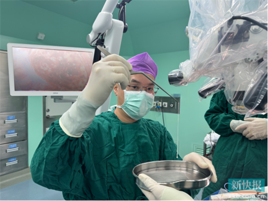 “除近期的癫痫大发作,患者此前频繁出现视野闪光、画面感,也是癫痫发作。”陈俊喜解释,从影像来看,虫体已从大脑深部爬至表层,正是手术取出的好时机。很快,他带领团队为患者行裂头蚴捉取手术,成功取出一条长约18cm的活虫。