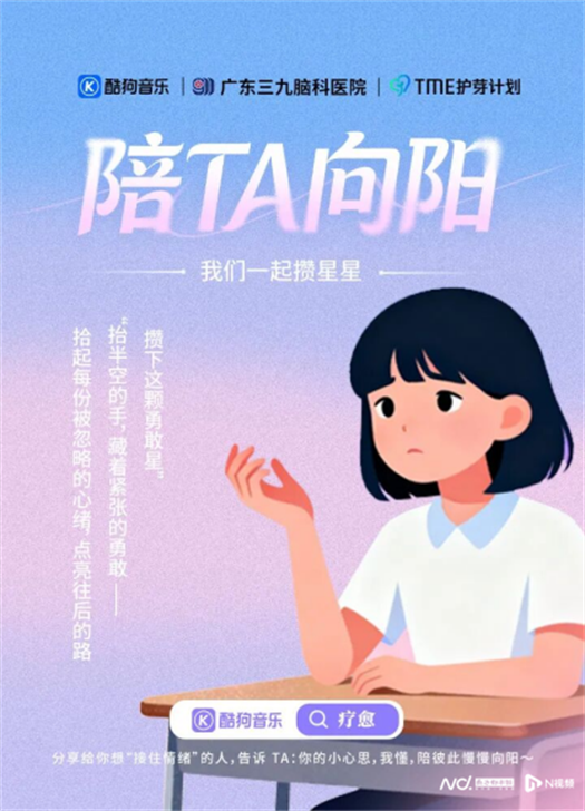 在世界精神卫生日到来之际,酷狗音乐携手广东三九脑科医院,在腾讯音乐娱乐集团“护芽计划”项目背景下,共同发起了聚焦青少年心理健康的“青少年护芽企划”。这项以“陪TA向阳”为主题的行动,旨在通过音乐的力量,结合专业医疗机构的科学指导,为青少年群体中普遍存在的情绪调节与人际交往困惑提供疏导窗口,引导他们积极面对成长挑战,健康向阳生长。