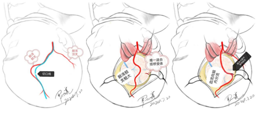 “由于患者常年注射扩张血管的药物,导致颞浅动脉异常粗大,常规的颞浅动脉-大脑中动脉端侧吻合术容易出现高灌注综合征,甚至灌注突破出血”。参与手术的神经外七科罗似亮主治医师介绍,最终采用水利工程中的“都江堰”理论,为患者进行右侧颞浅动脉-大脑中动脉侧侧吻合,实现流量控制,达到按需分配血流,同时行颞肌贴敷术间接重建血运,改善大脑缺血情况。