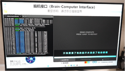 “我们大脑跟肢体有连接通路,因为疾病这个通路中断了,我们通过‘机器’的方式把这个通路重新连接起来。”广东三九脑科医院康复治疗科副主任陈汉波介绍。运动功能障碍是脑卒中、脑外伤、脊髓损伤等常见的后遗症。通过现场这套非侵入性脑机接口运动康复系统就像一座“大脑与身体的桥梁”,通过佩戴电极帽采集患者的脑电信号,系统能精准识别大脑中“想抬手”“想划水”等运动意图,再通过设备解码信号,驱动功率单车带动患者肢体同步运动,实现“意念驱动肢体”的康复训练。