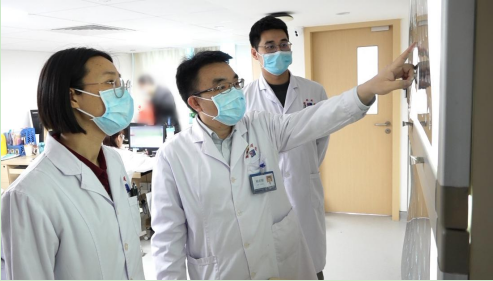 赖名耀(左二)及团队在阅片