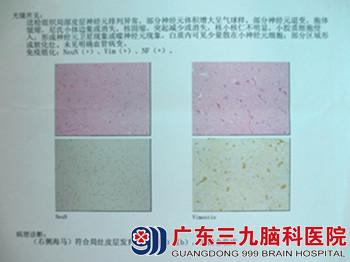 为进一步求证,找到广东三九脑科医院综合神经外科的鲁明主任,行头颅MR波普检查结果考虑非肿瘤性病变,24小时脑电图提示双侧额颞部均有异常电波,以右侧颞部为主。完善相关检查后,由鲁明主任主刀,在唤醒麻醉神经导航引导下行右侧海马病变切除术+右侧前颞叶部分切除术,皮层电生理检测示颞中回、颞下回局部异常放电,切除部分颞中回及颞下回脑组织,深部见病变组织,位于海马前中部,呈黄白色,质中,边界不清,血供一般,予显微镜下分块切除,术中监测患者语言及肢体运动功能,均未见明显异常,手术顺利结束,术后经专科治疗,无癫痫发作,康复出院。术后病理结果为:局灶皮层发育不良(FCD IIb)。