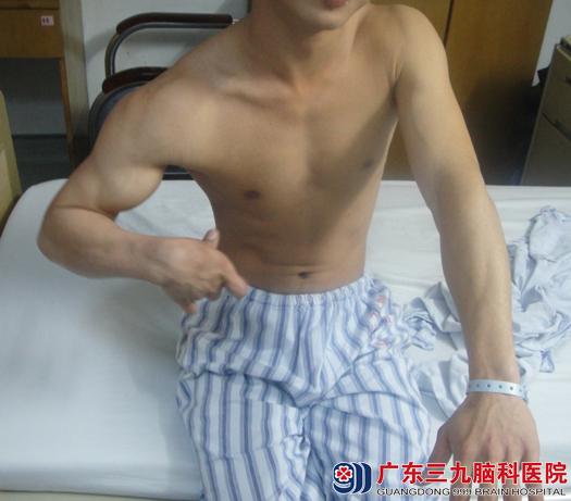 阿平,男,今年26岁,是双胞胎之小,自幼家人发现阿平运动功能比同龄人发育稍迟缓,认为等阿平长大点就好了,遂未加重视。现阿平已是二十多岁的小伙子了,但其右上肢屈曲痉挛,右手屈指垂腕畸形,指间协调性差,后在亲戚建议下,于一月余前来到广东三九脑科医院就诊。