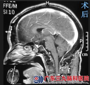 听说广州有个专治脑科病的医院,肖先生决定慕名求医。来到广东三九脑科医院,综合神经外科鲁明主任了解情况后,建议先行头颅MR检查,结果提示鞍上区示一不甚规则的占位性病变,大小约2.21cm×1.94cm×1.55cm,右侧视束稍受压,鲁明主任考虑颅咽管瘤可能性大。经讨论,建议行手术治疗。完善相关检查后,由鲁明主任主刀,在全麻下行鞍区肿瘤切除术,术中见肿瘤呈灰白色,质软,血供不丰富,边界清楚,包膜完整,予镜下肿瘤全切除,手术顺利结束。术后经专科治疗护理,肖先生未出现下丘脑反应、离子紊乱、尿崩等手术并发症,康复出院。术后病理结果:颅咽管瘤。