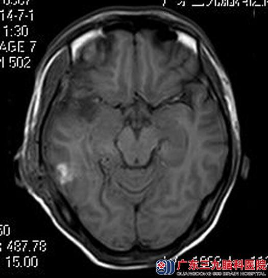头颅MRI检查提示:右侧颞叶内后侧、右侧侧脑室后角旁异常信号影,考虑海绵状血管瘤可能性大。综合神经外科鲁明主任考虑阿华的症状是属于失神发作,口服药物治疗效果不好,建议手术切除病灶。