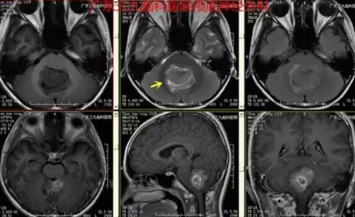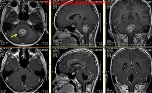髓母细胞瘤好发于10岁以下的儿童,属于原始神经外胚层肿瘤,是儿童较常见的脑内恶性肿瘤之一,约占儿童原发性脑肿瘤的15%-30%,恶性程度高,常合并有梗阻性脑积水,可以发生在颅脑的任何部位,但绝大多数生长在第四脑室上的小脑蚓部。由于肿瘤增长迅速,容易充满第四脑室 ,形成梗阻性脑积水,导致颅内压增高,临床表现以头痛、呕吐及共济失调最常见。