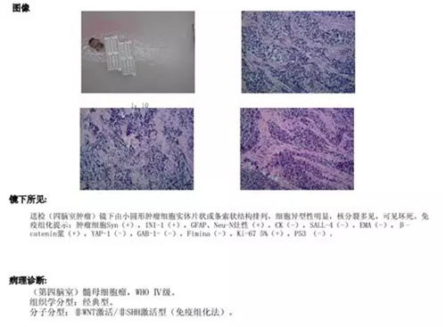 图5:术后病理提示(第四脑室)髓母细胞瘤,WHO Ⅳ 级