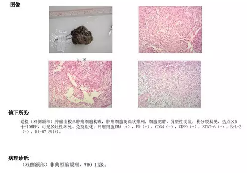 ▲术后病理提示(双侧额部)非典型细胞瘤,WHOⅡ级