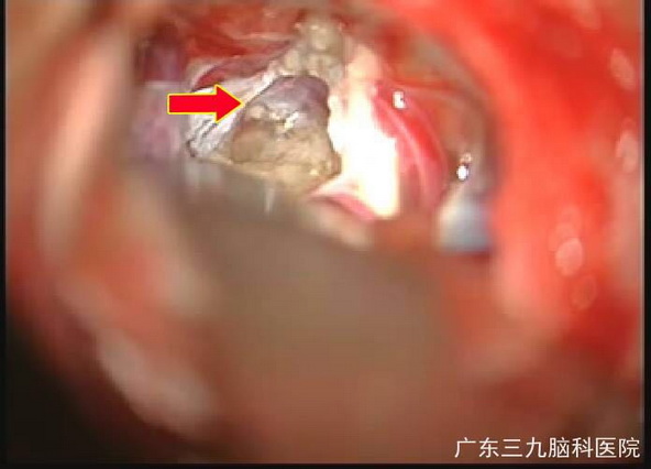 经科室医生讨论,几日后,为蔡叔实施全麻下“右侧三叉神经微血管减压+右侧桥小脑角胆脂瘤切除术”。术中可见桥小脑角区蛛网膜黏连,异常增厚,松解后在面神经至三叉神经腹侧面可见包膜内充满白色珍珠质光泽团块。执刀医生充分吸出内容物,并松解周边粘连。医生发现三叉神经下方被小脑后上动脉压迫,将动脉从神经上剥离,并用特氟龙棉片垫开。术后蔡叔恢复良好,右侧面部疼痛感消失。