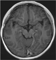 入院后行CT、MR检查,显示:鞍区及鞍上较大占位病变,考虑颅咽管瘤。遂于2010-08-11在全麻下行“鞍区及鞍上颅咽管瘤切除术”,术后病理:造釉细胞型颅咽管瘤。于2011-01-04开始给予三维适形放疗,总结量5040cGy/28F。放疗后,患者定期回院复查肿瘤复发征象。