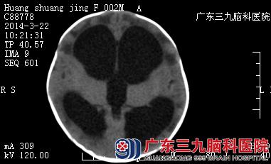 患儿静静刚出生时,她的头围就比一般的婴儿稍大些,因故常常被亲戚邻居夸奖“大头娃,人聪明”。家里人也因此津津乐道。数月前,静静一次感冒就诊时,医生提醒,这小孩头颅大的有些异常,可能有问题。于是给静静安排了头颅CT检查,结果示:重度脑积水。这结果把家人吓了一跳,为了明确诊断,家人抱着静静来到了广州。