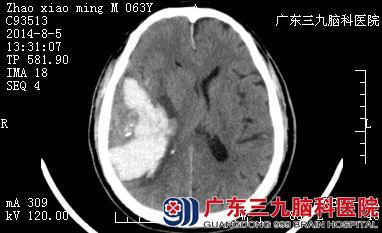 赵伯,今年63岁,家住广东台山,数月前的一天晨起活动时突发头痛,后晕厥过去,被家属紧急送至当地医院。测血压示190/105mmHg,头颅CT检查示:右侧颞叶脑出血。当地医院给予脱水降颅压、控制血压等积极处理后,赵伯的病情稍好转。为求进一步治疗,家属于2014年8月5日将赵伯转入广东三九脑科医院。